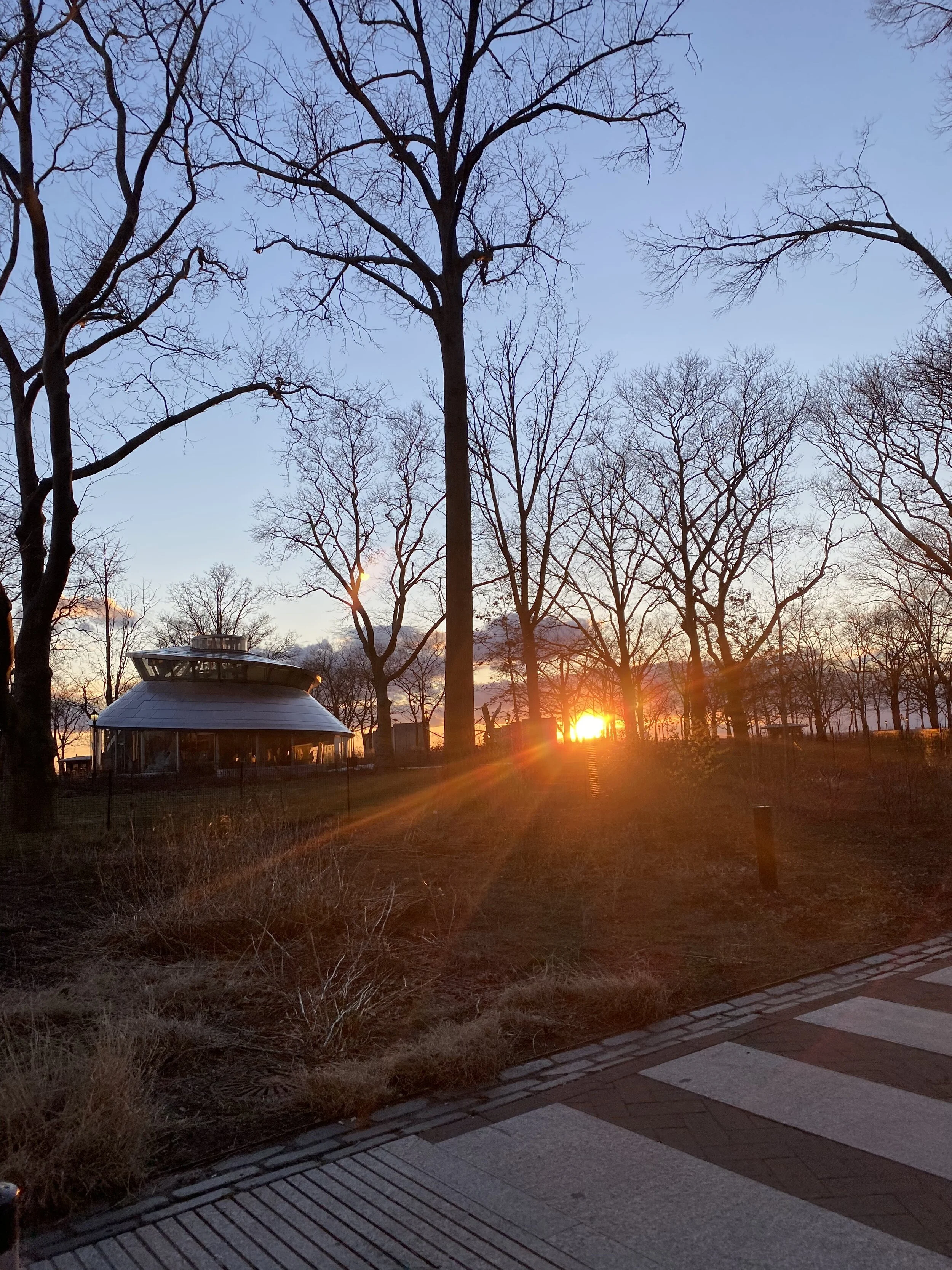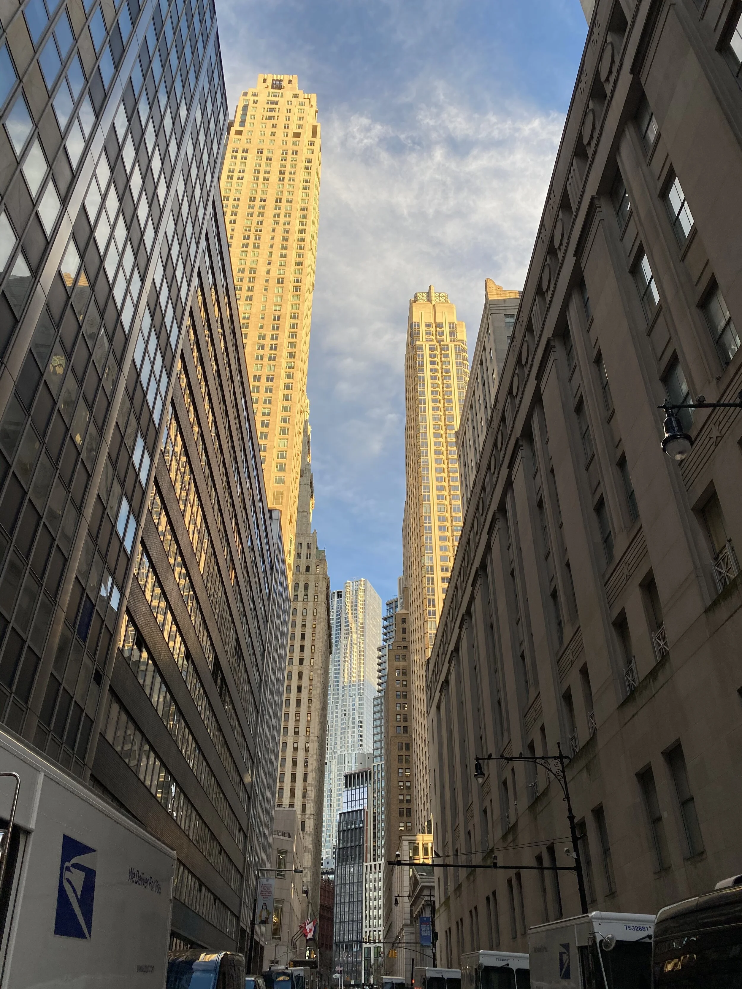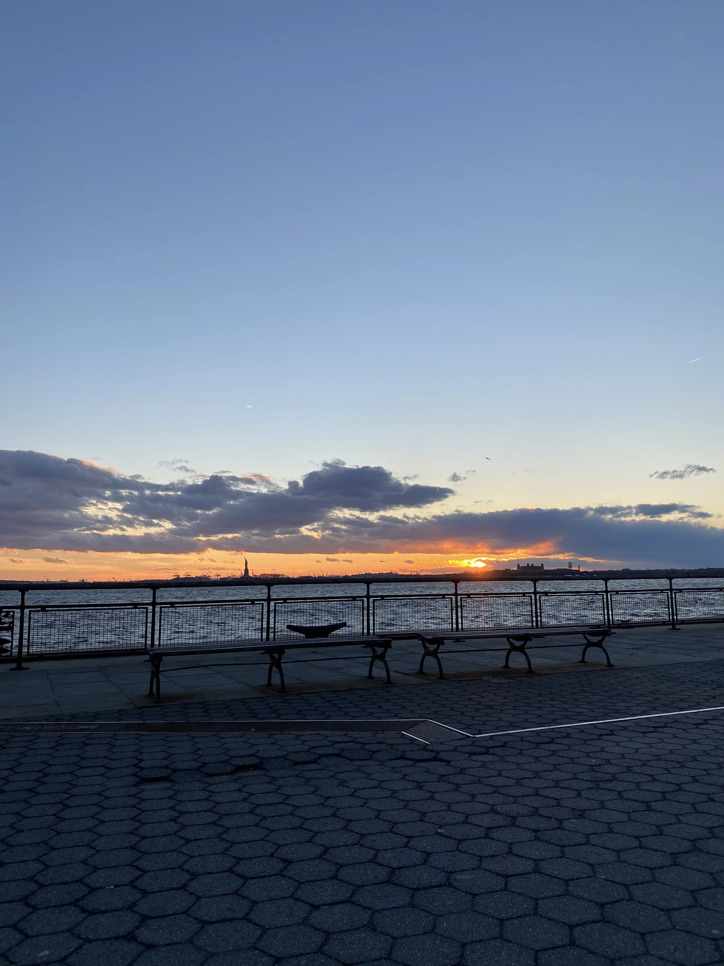 the financial district is not romantic; the streets are narrow and dark and grimy, though perhaps that is what you would expect. yet as i approached the battery, the sun came out. it was half an hour to sunset, and i raced southward to catch a glimpse of lady liberty, radiance beaming from the clouds, gold reflecting off the ferry; wind whacking hair across my face. i do love to visit the lady.