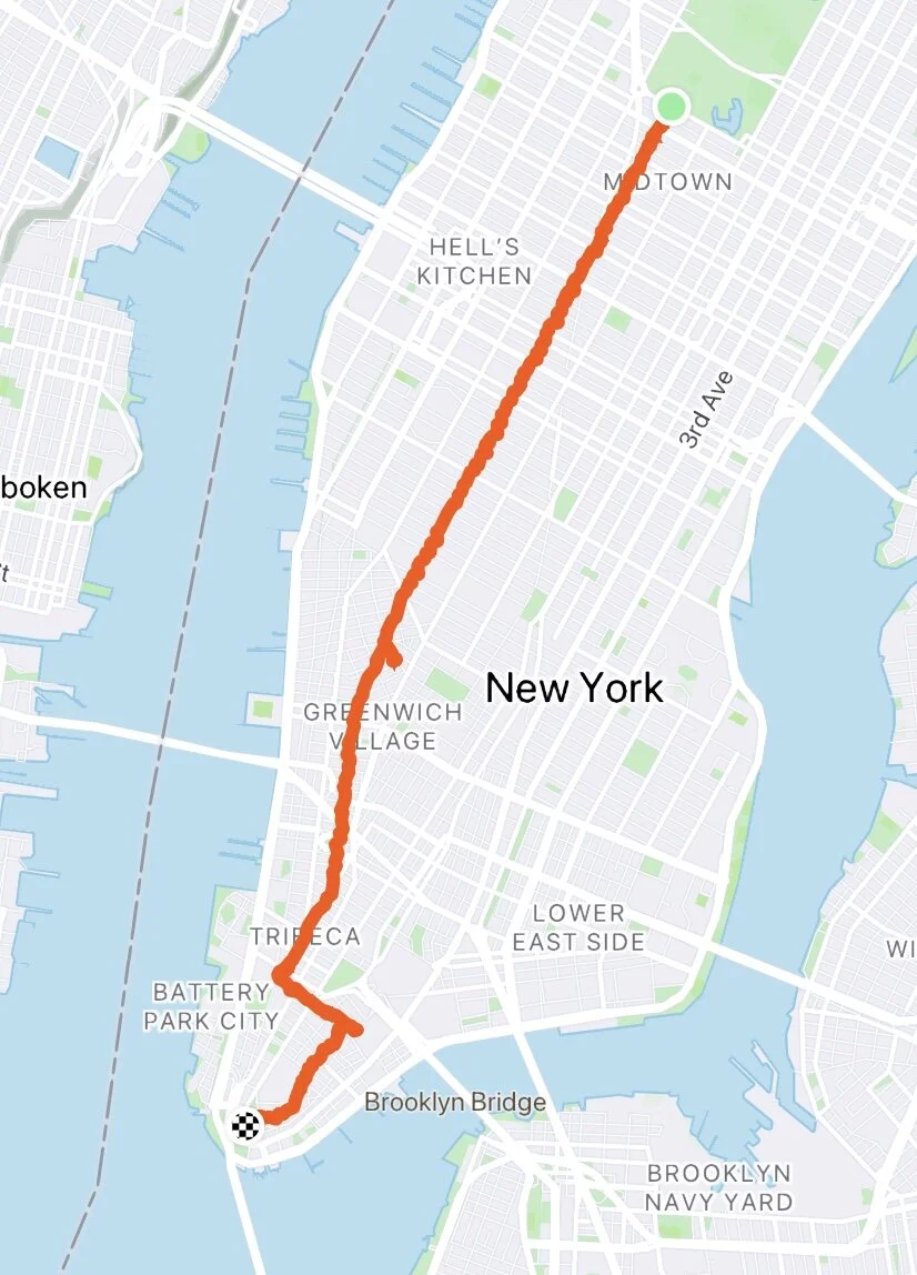 these were the sights and a couple sounds of this walk: a grandfather carrying his grandson’s scooter up the subway stairs; souvenir stores; a man in a tan coat holding beads, trying to gain my attention; half zipped jeans; two paris baguettes (the korean bakery); flamboyant dance moves; the line for whole foods; a man leaned against the wall nodding as another man entered a building; three bike stores (thinking of you, bro); someone standing on the edge of the sidewalk eating dollar pizza; smize; subway rumbling below the grates below my feet; jackhammer, dust in my eyes; the holland tunnel; albert capsouto park, chess tables; a dead pigeon next to a soda cup; sweater wearing shivers; two masked treadmill walkers in an immaculate gym; suited up police men, guns; a woman kneeling and screaming; a really long cigarette; church bells, 4:30pm; two nurses in teal and blue scrubs riding the subway.
