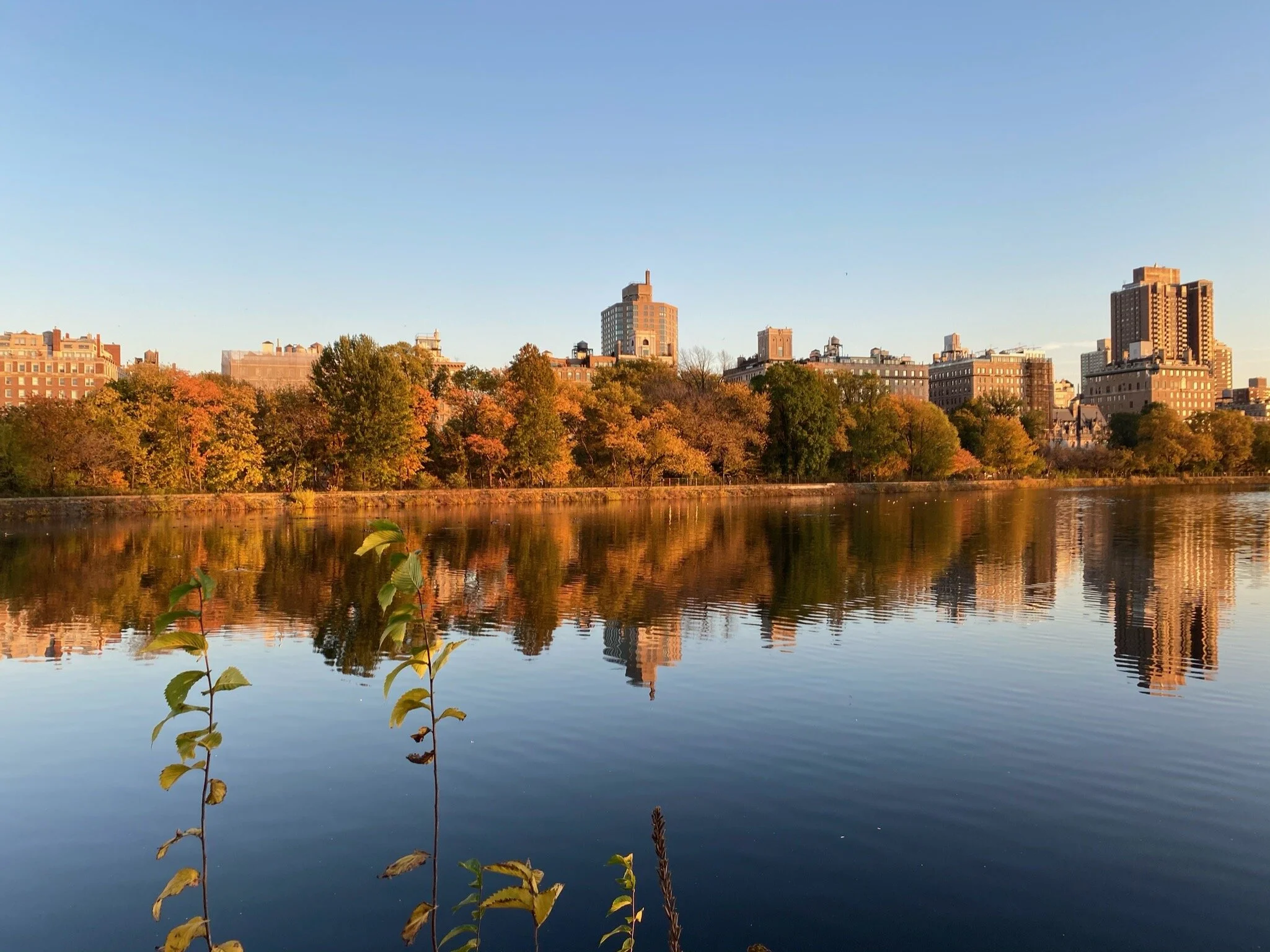 the sights of today: a father pushing a stroller; sweet little children dawdling on the sidewalks; yellow cabs yellow buses; nannies (all women of color, all of the colors) and their children (curly haired white cherubim); an elegant chess set spotted through a window (i watched most of the queen’s gambit yesterday and quite enjoyed); a stick-and-bones tweenage girl walking her dog, as well as all of the dogs in new york it seemed; baseball, tennis, basketball, dance; a man hanging from a tree; a woman lying in the fallen leaves; a man playing air drums while riding a city bike; ‘2021, though, 2021’ i overhear; squirrels chasing each other through crackling foliage; a little girl with matching red gingham pinafore, headband, and mask; a TURTLE (stare hard at the blue below); a lime green ipod shuffle (remember those?); a man staring out of a half moon window (i may have stared up at him for too long); a mother cooking, also spotted in a golden window; a delivery man attempting to reach the deliveree upstairs; nurses (or doctors) in blue scrubs (thought of you, dad); nuts4nuts (is so much cheaper up here than it is in times square); street vendors closing up shop; bikers trying to run me over in central park (thought of you, nino).