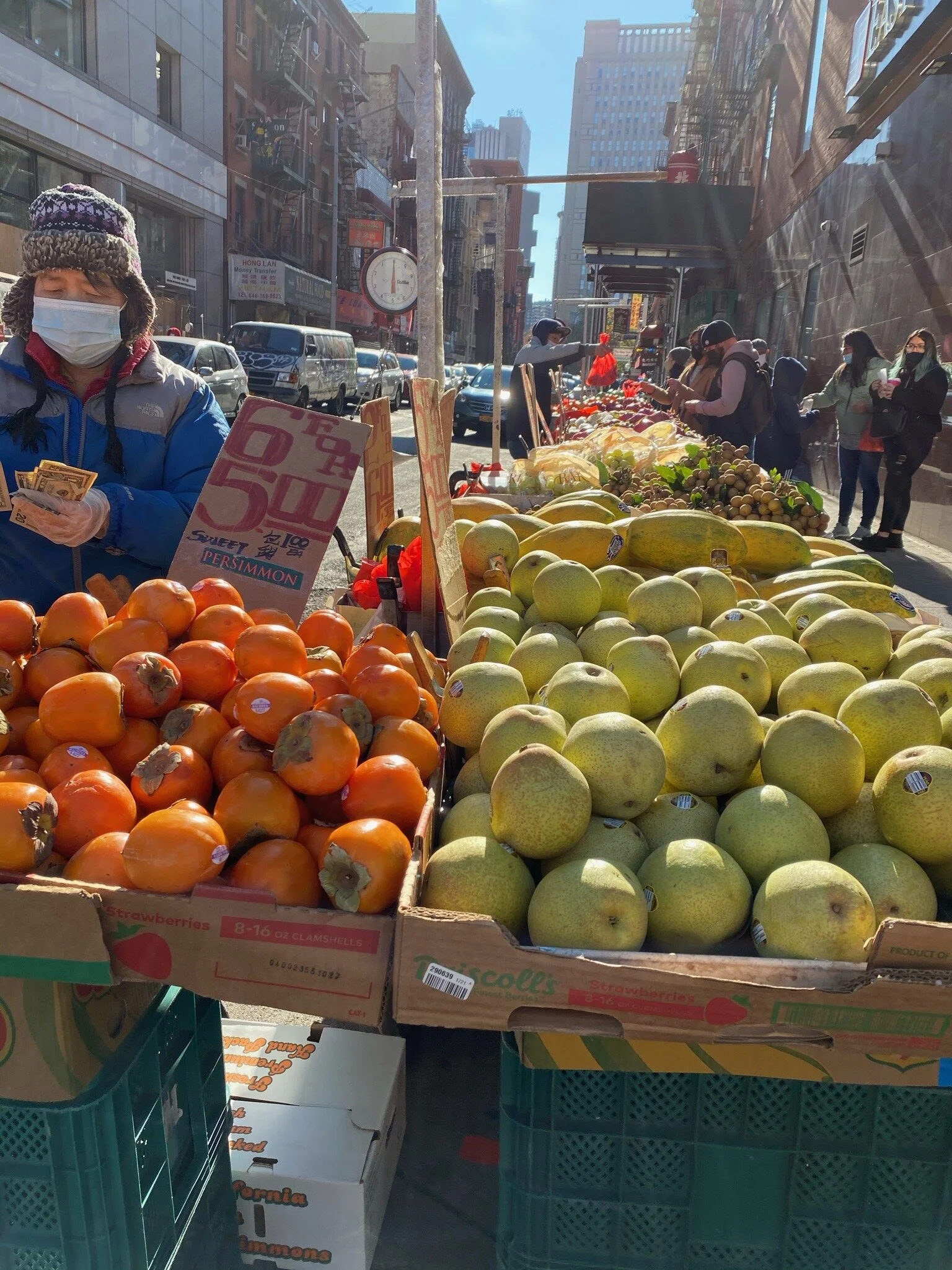 of course, the sights: a dusty limousine; a woman in a fur coat and flip-flops; an older sister calling to her little brother to stop dawdling; women haggling for (faux) designer belts sold out of a car window; magenta spandex; black spandex; fake louis vuitton wallets; clumps of grandparents sara d. roosevelt park huddled around… chinese herbs and roots?; a soccer game; a speedy scooter; mismatching shoes; a man riding a bicycle with a skateboard on his back; an elegant lady in a powerful pantsuit; a long line outside of citymd; lottery tickets; starbucks christmas cups; a yellow mesh shawl; a stripey stray cat; a black stray cat; a man trying to hand me a scientology brochure; someone sitting in an abandoned school bus who gave me a slight fright; a dead pigeon.
